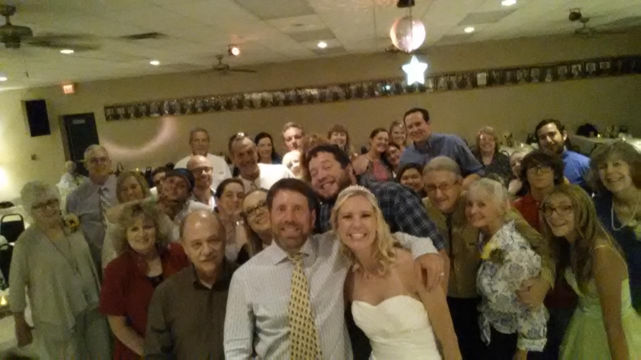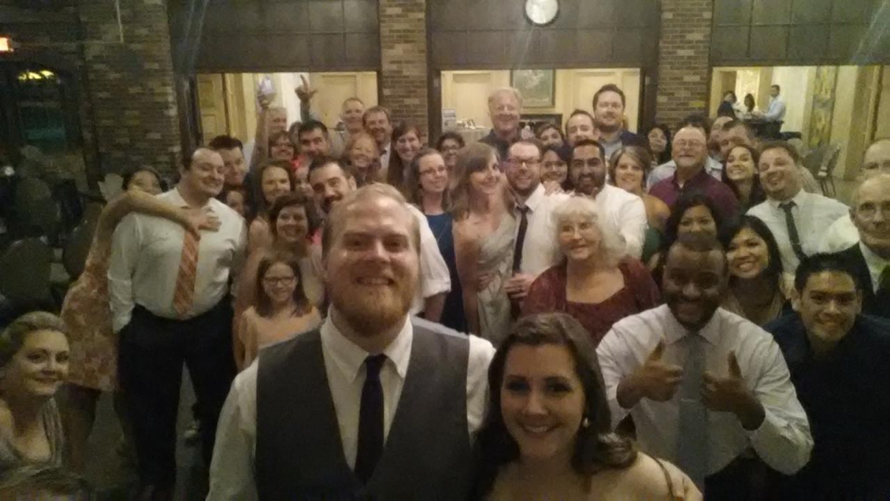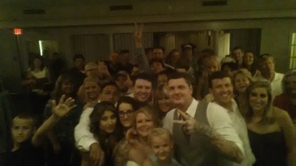 I like taking pictures at all of my jobs & providing them to clients. I know that there is a photographer at most events, but there are times when I see something that maybe the photographer does not see. At the end of the evening, I like to get everyone that is still present to get on the dance floor & take a big group 'selfie' picture with the bride & groom in front. This is a lot of fun & the couples love the results.